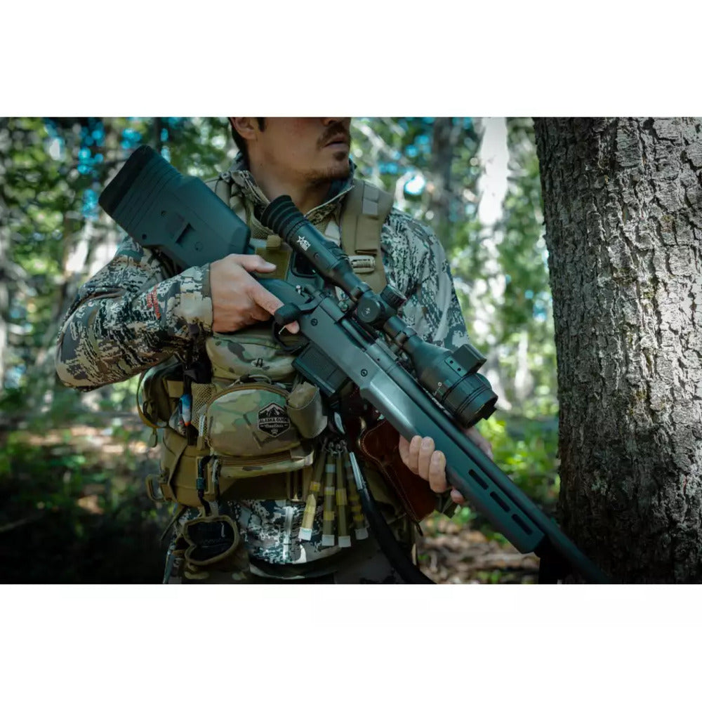 The NEW Spectrum LRF 4K digital day & night vision scope from AGM utilizes many of the features that shooters have come to know and love in the Spectrum-IR, but with one big addition: a 1,000-meter integrated laser rangefinder (LRF). This feature helps alleviate a common issue many shooters find themselves experiencing when hunting with any sort of digital optic, and that is the lack of depth perception that is inherent in optics utilizing a digital screen. The Spectrum LRF 4K pairs that LRF functionality with an advanced high-resolution 3840×2160 detector, which works in conjunction with a high quality 1920x1080 OLED display. The Spectrum LRF 4K is one step in the continuous evolution of full color digital electro-optics. New and improved 4K digital sensors are now naturally more sensitive to infrared than older models once were, which means the unit should require much less external Infrared light while used in night mode. The incredible new adjustable aperture provides traditional daytime hunters with increased low light gathering capabilities that exceed that of some of the highest-quality traditional glass hunting optics. The Spectrum is literally built for prime, legal daytime hunting hours in the precious minutes just after sunrise and just prior to sunset. Powered by two internal rechargeable 18650 and one additional replaceable 18650 batteries, the 11hr battery life supplies users with more than enough time behind the eyepiece during hunting season. This unit is also one of AGM’s first to utilize a semi-circular display, an on board ballistic calculator and 1000yard integrated laser rangefinder, as well. Along with the new 4k high resolution CMOS sensor, we thought it prudent to also update the internal storage capacity, which now comes in at a robust 64GB, which will come in handy when recording in higher resolution. If you’re looking for an exceptionally capable technological optic, the Spectrum LRF 4K is the perfect addition to your arsenal.