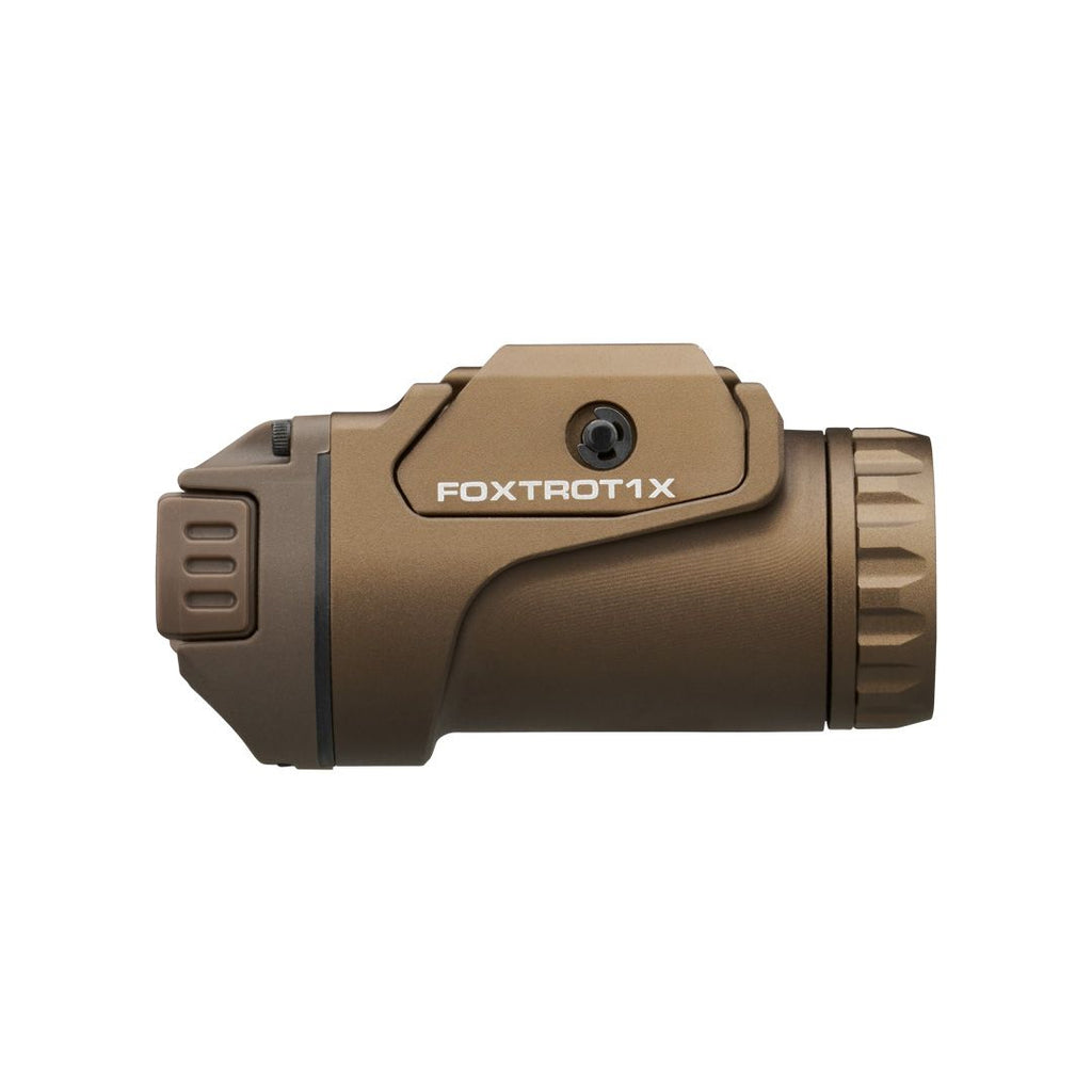 The unique, FOXTROT1X mounts to any Picatinny 1913, SIG SAUER proprietary, or Glock rails with no need for adapters or cross-slot modifications. Dual, finger-actuated tact switches support ambidextrous use while functioning in either continuous or momentary mode. The ultra-efficient white LED runs for over 1.5 hours at 450 lumens on a single CR123 battery. The rail-mounted light is ideal for home defense, law enforcement, or military applications and should fit most holsters designed for handgun lights.