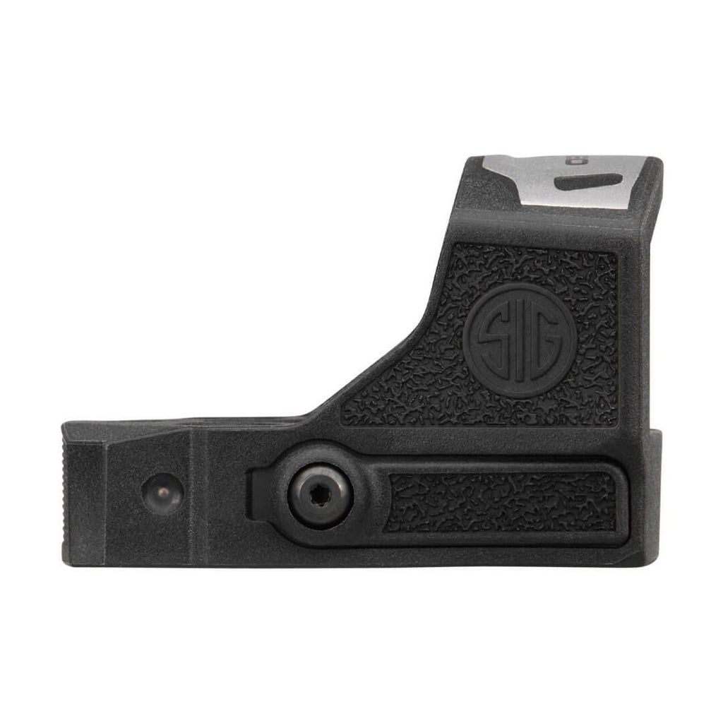 The ROMEO-RS features a convenient side-mounted illumination adjustment button embedded into the polymer housing to prevent accidental interference, and the side-load battery tray makes battery replacements easy to do while maintaining zero. SIG SAUER’s updated footprint design maintains true compatibility with industry-standard optics cuts while allowing for the additional lock-up strength provided by steel recoil pins to eliminate the potential for any lateral shift.