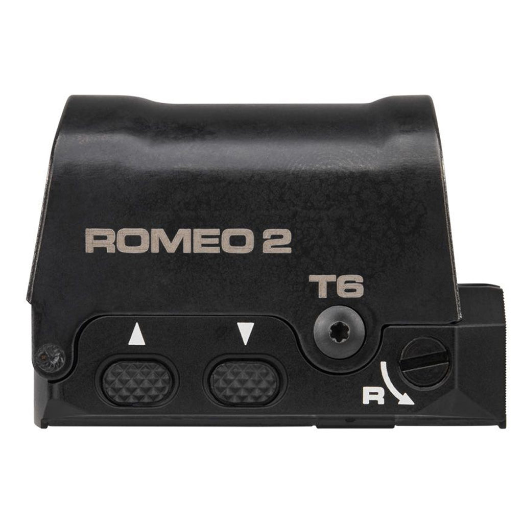 Featuring 3 MOA and 6 MOA reticle options with 15 brightness settings, the ROMEO2 ensures optimal target engagement and adaptability in any environment. The sight features a high-efficiency, point source LED emitter and molded aspheric glass lens, utilizing a high-performance red notch reflector coating that provides exceptional brightness and light transmittance without distortion.