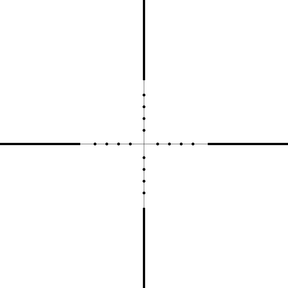 The classic Mil Dot features multiple aim points for hold-over and hold-under. Accurate mil spacing on 10x, featuring 4 Mil Dots in each direction.